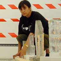 Vega Ruiz Capellán. Desde 1991, trabalho no campo da instalação com José Prieto Martín. As nossas obras são instalações sonoras moldáveis, que se reinterpretam tendo em conta o lugar, constituindo um work in progress. Com elas, tornamos explícita uma reflexão crítica e de denúncia sobre aspetos sociopolíticos da sociedade ocidental, tendo sempre muito presente a memória coletiva, os testemunhos sociais e o artesanato. Além disso, procuramos reativar o papel do público-espetador-recetor do facto artístico, de modo a tornar o ato comunicativo mais dinâmico. Também nos importa a mensagem, bem como a sua correta materialização final — razão pela qual criamos “máquinas para o pensamento”. Atualmente, a nossa preocupação com o deteriorar do meio ambiente levou-nos a diluir a expressão subjetiva e a evoluir para uma arte de orientação coletiva e participativa, criando obras que poderíamos denominar “esculturas sociais”, realizadas com a participação ativa da comunidade, com o objetivo de gerar uma consciência ecológica coletiva.